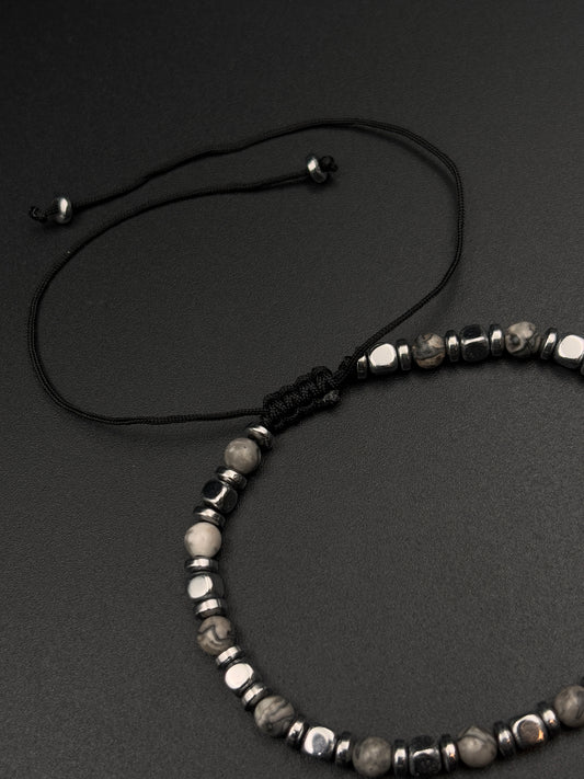 Shades of beads Grey Beaded Bracelet- Adjustable Size