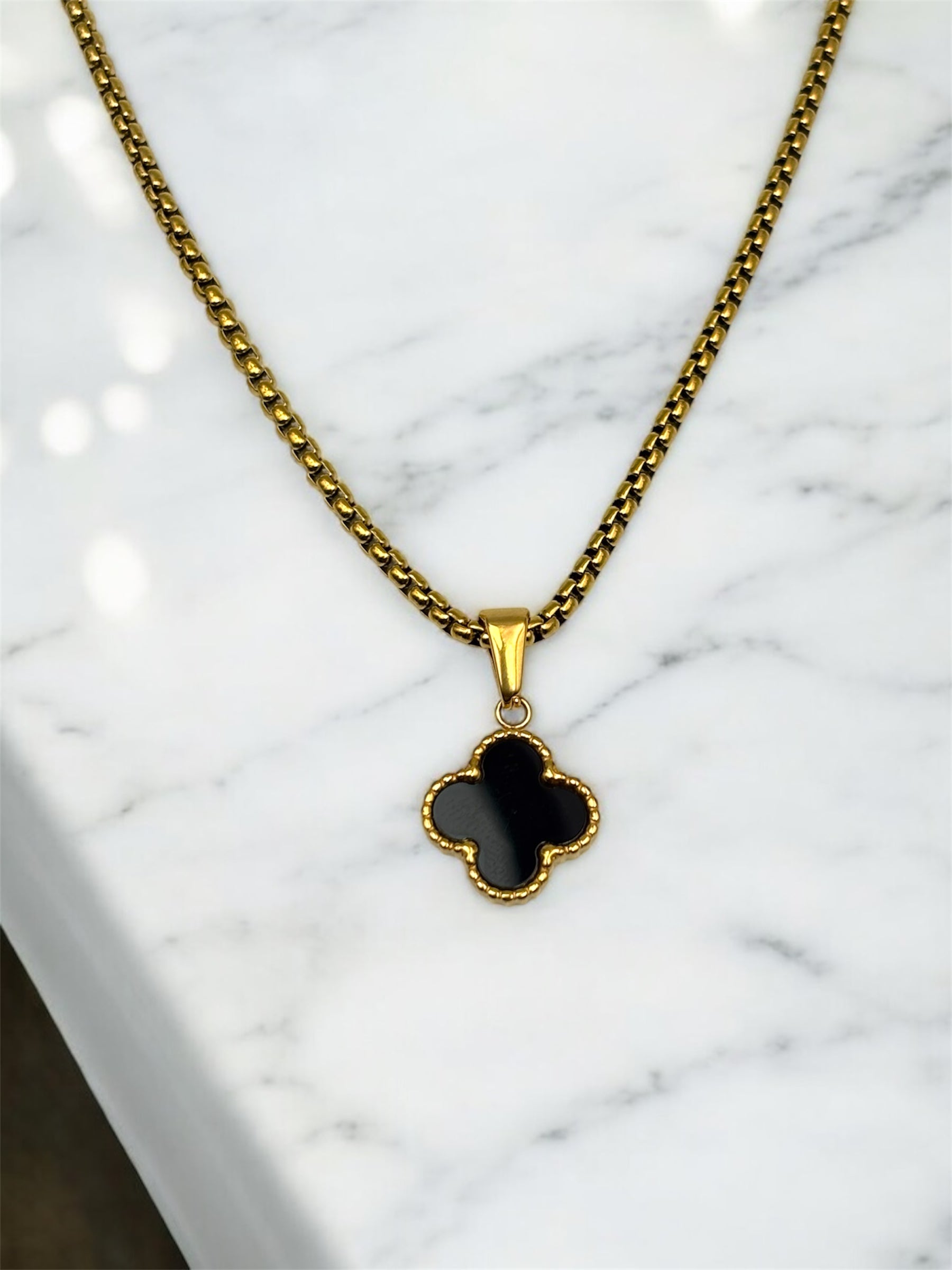 Upgrade your style with the Clover Minimal Necklace. Made from 316 premium stainless steel, this high fashion accessory boasts a 22 inch anti-tarnish round chain and a 2 cm sized pendant for a luxurious touch. Elevate any outfit with this elegant and durable necklace.