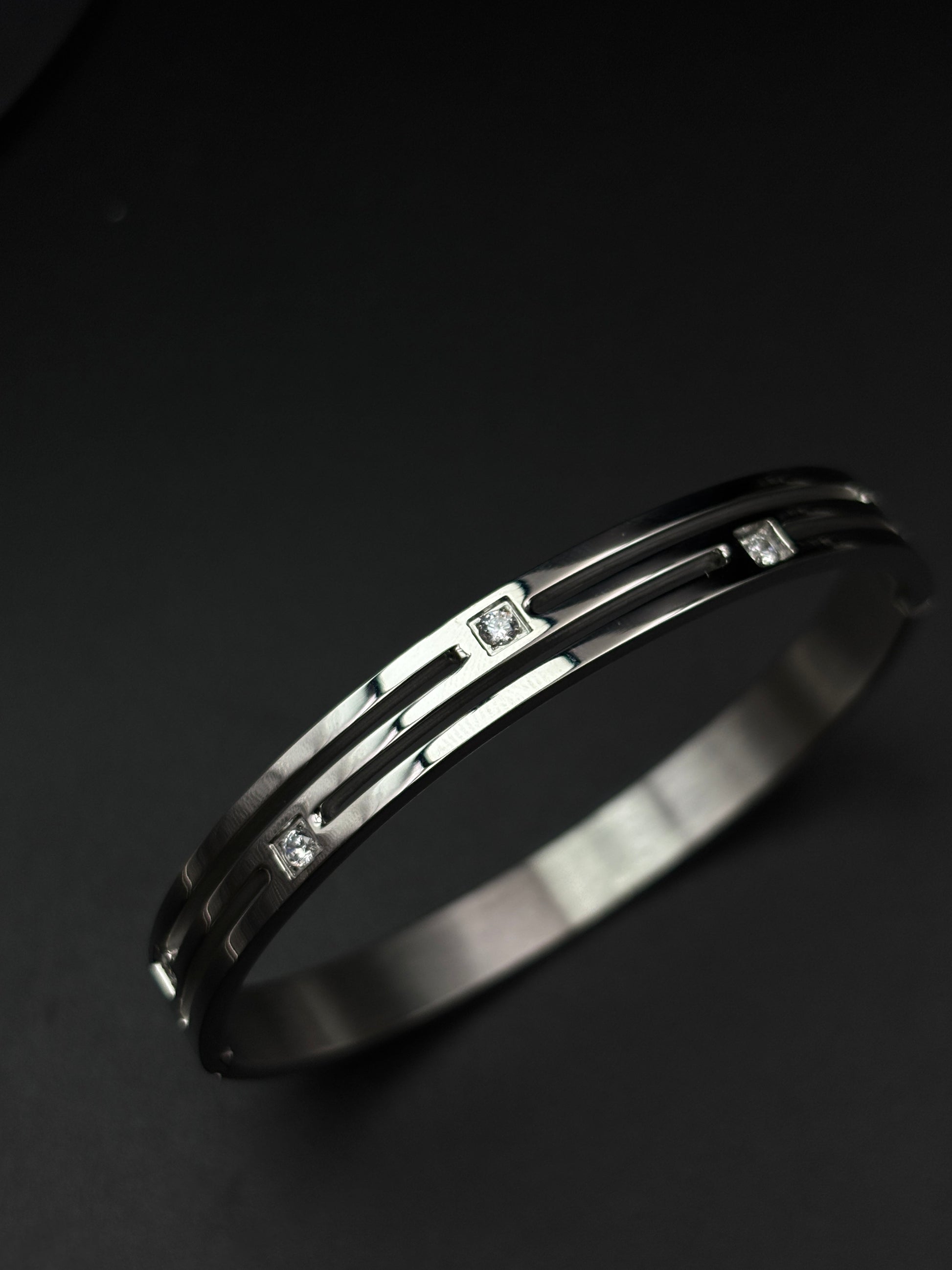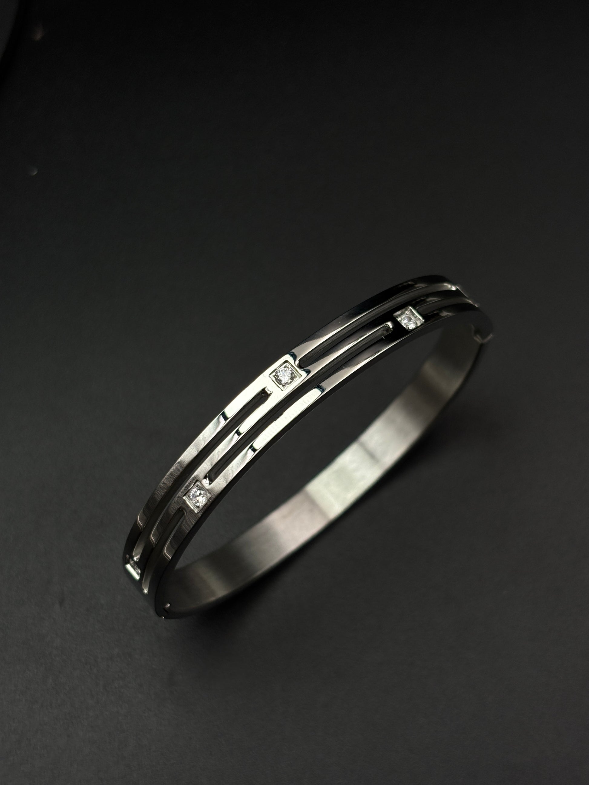 Crafted with simplicity and luxury in mind, the Glory Diamonds Studded Broad Bracelet for Men is the epitome of sophisticated style. Featuring a stunning design with a simple kada and more diamonds, this bracelet offers premium quality without any logos for a discreet look. Elevate any outfit with the quiet luxury of this exquisite piece.