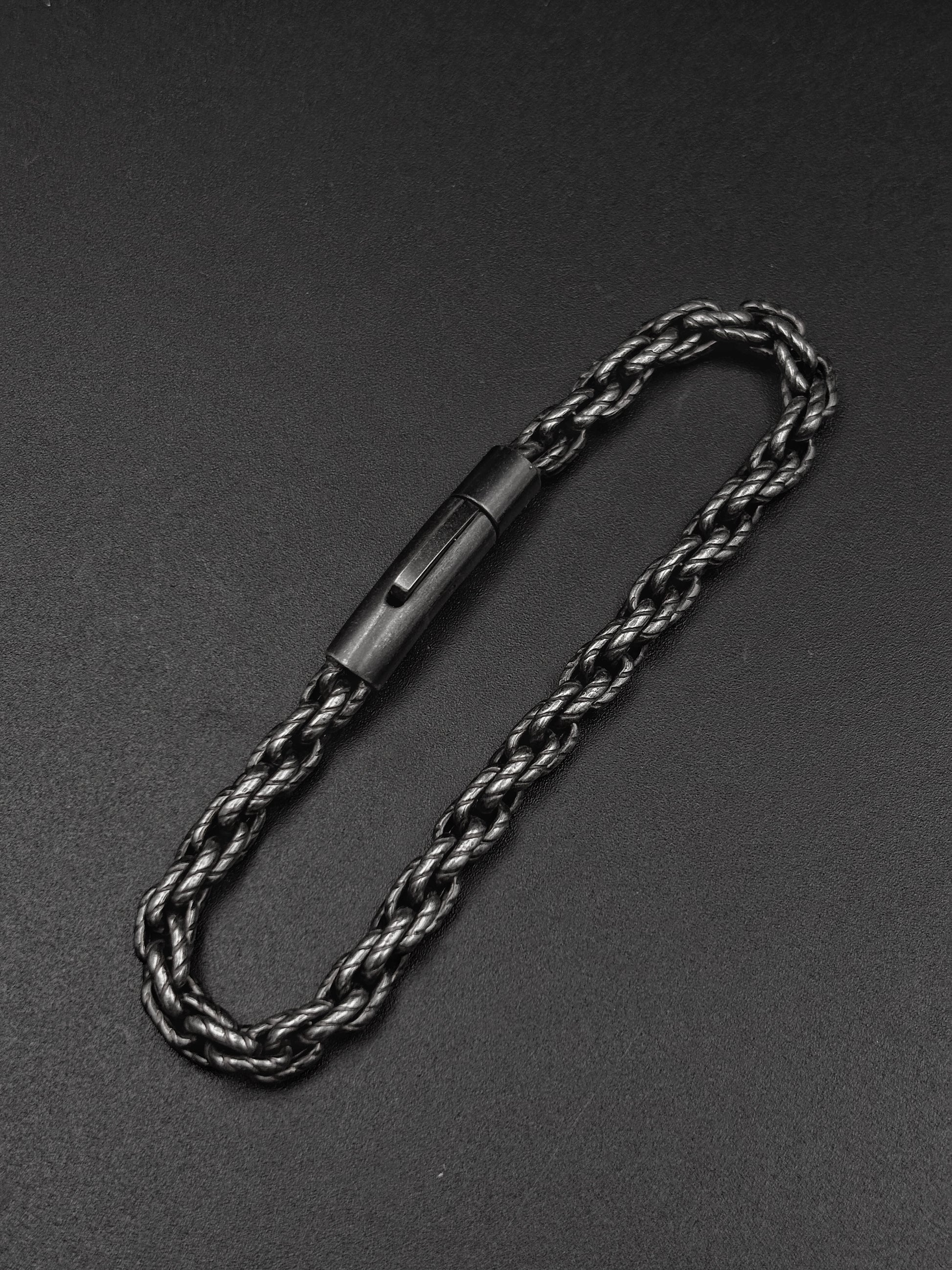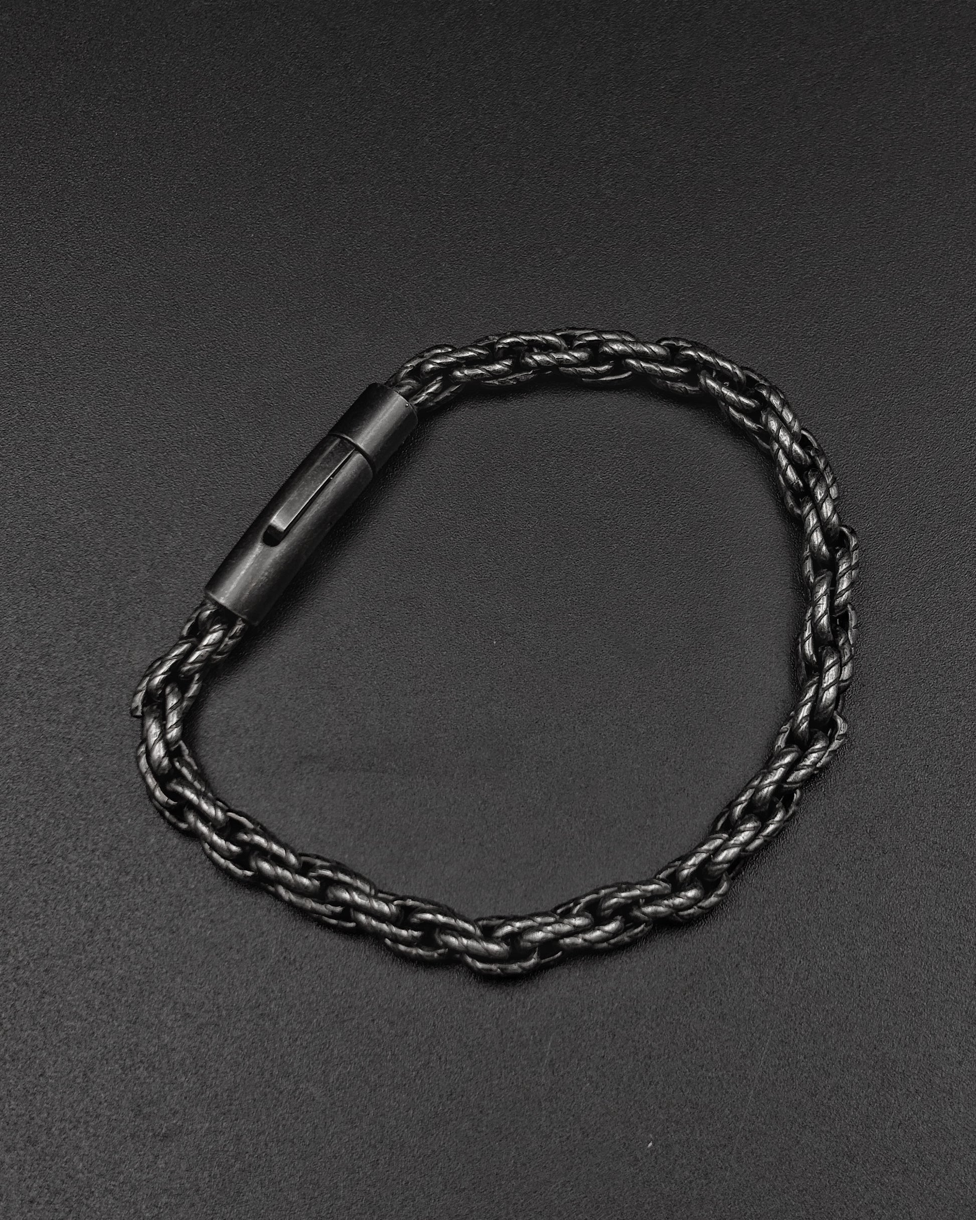 This Twisted Chain Bracelet is made from high-quality gun metal, giving it a sleek and stylish look. Its 7.5 inch length makes it perfect for everyday wear, adding a touch of sophistication to any outfit. Elevate your style with this versatile and durable bracelet.